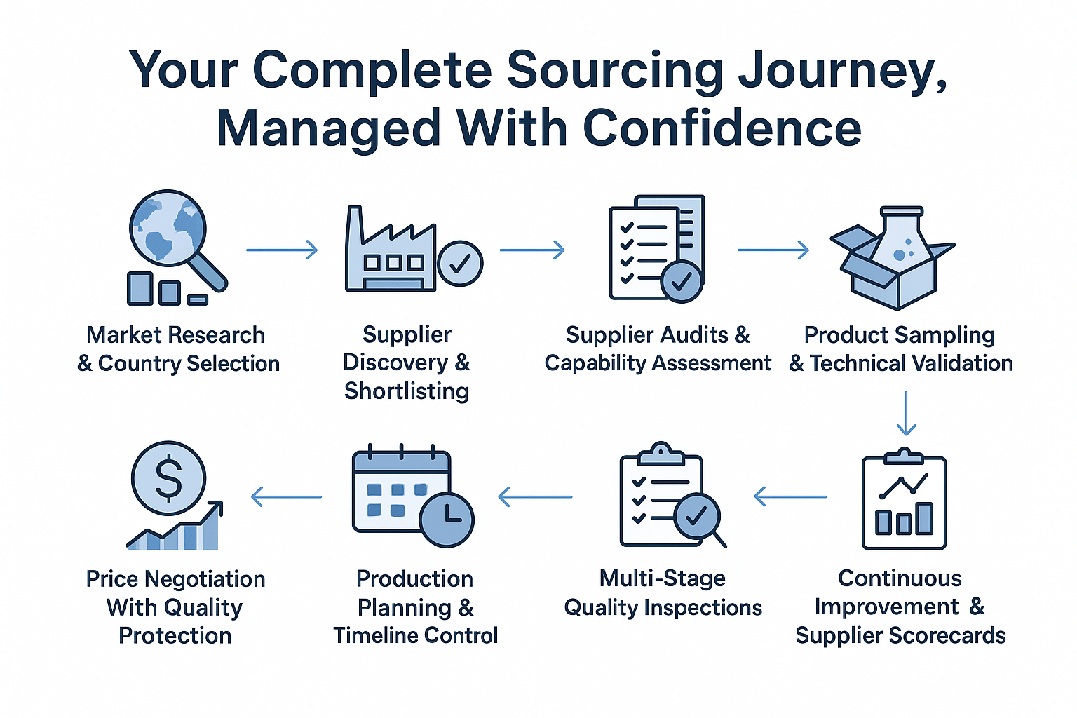 Global sourcing is full of opportunities—but also full of risks. Choosing the wrong supplier, receiving poor-quality products, facing shipment delays, or failing compliance standards can damage your business reputation instantly.